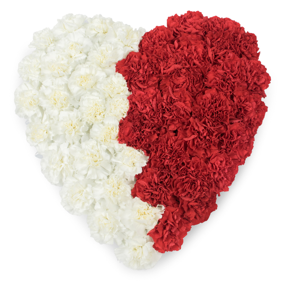 - Vivid Colors: The white and red carnations create a bright and appealing visual contrast.